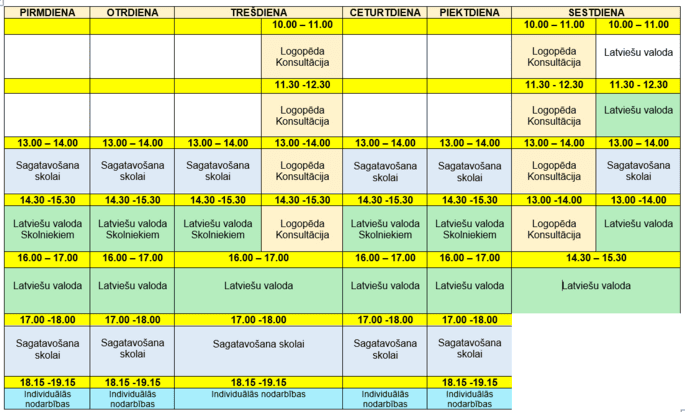 NODARBĪBU SARAKSTS